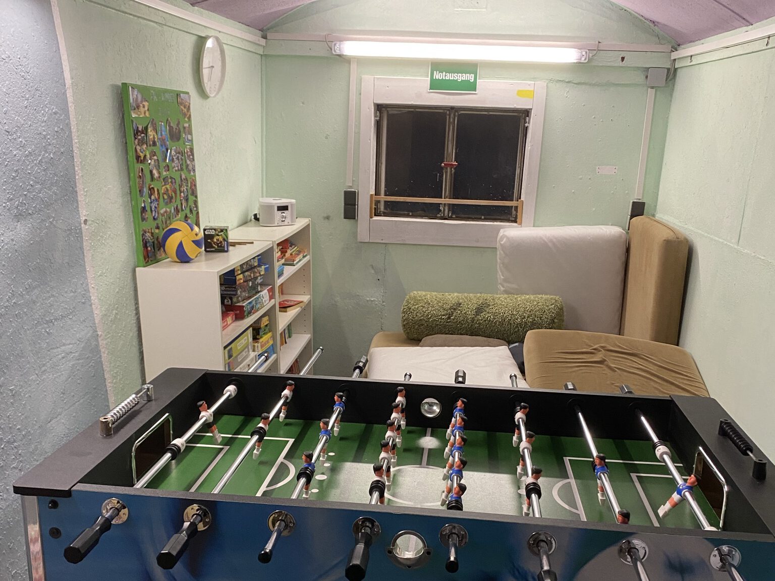Ein eigener Treffpunkt für unsere Kinder & Jugendliche mit Kicker, Spielen und Sofa – zum Austauschen, Chillen und gemeinsamen Gestalten.